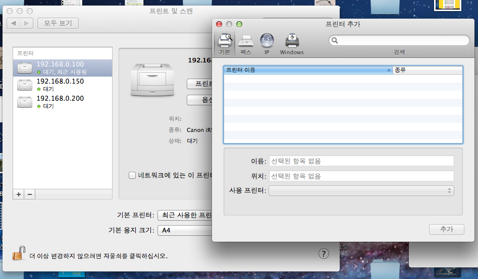 프린터 추가 과정은 제가 정리해 놓은 내용을 참조해 보세요. (아래의 문장을 클릭)