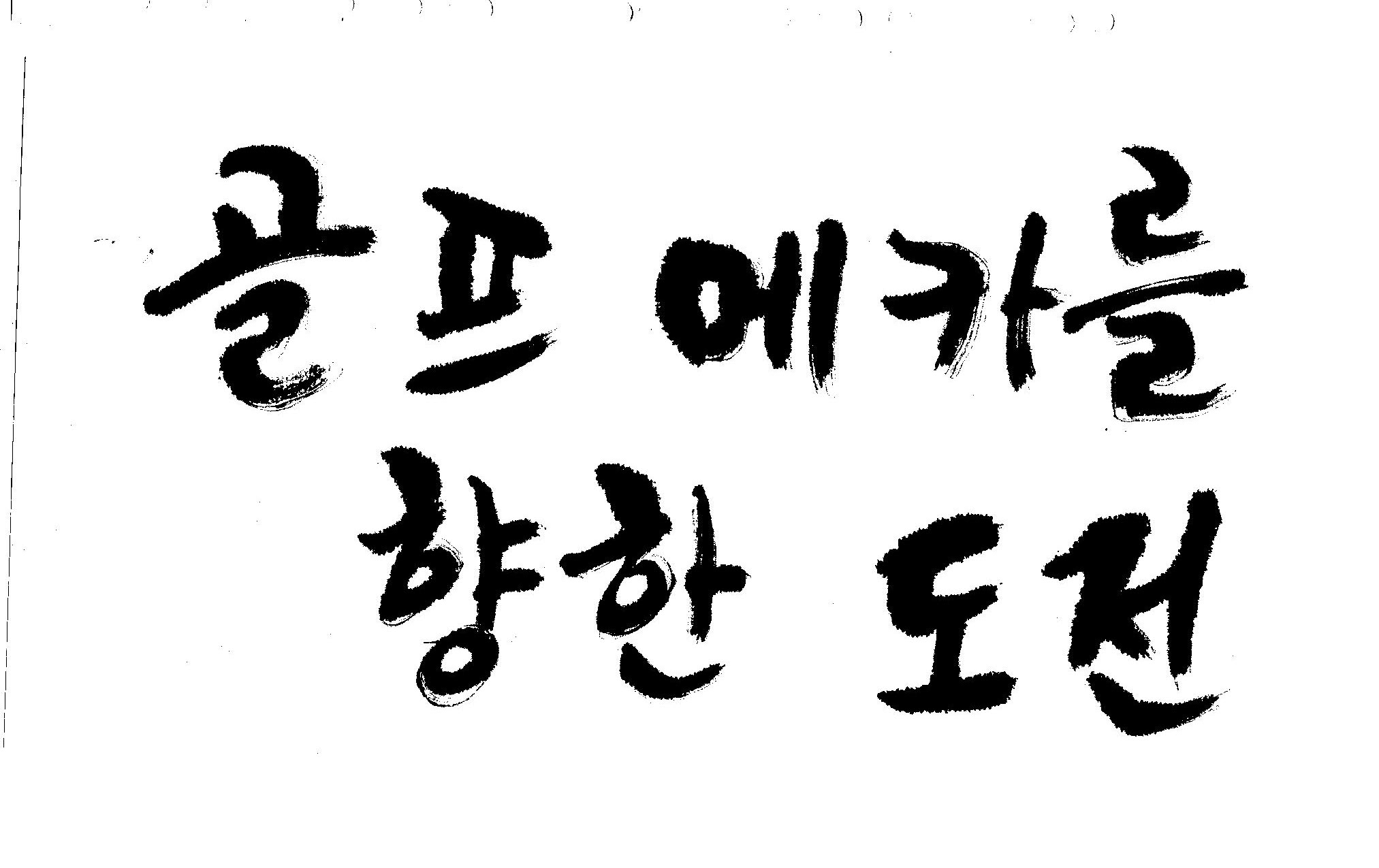 우경의 행복한 캘리세상-골프메카 김철호 일반 0 8714 2009.07.18 10:25 리듬감을 최대한 살리고 ㅡ 스포츠의 운동감과 밝음 기교섞인 획을 배제--일반적인 느낌 굵기변화를 통하여 도전 낱말을 강조 스타일은 비슷하지만 ...한 사람이 썼으니까 ㅎㅎㅎ 서로 다른 글꼴을 올린 것은... 비교하여 보시고... 편집자에게 선택권을 주는 것입니다